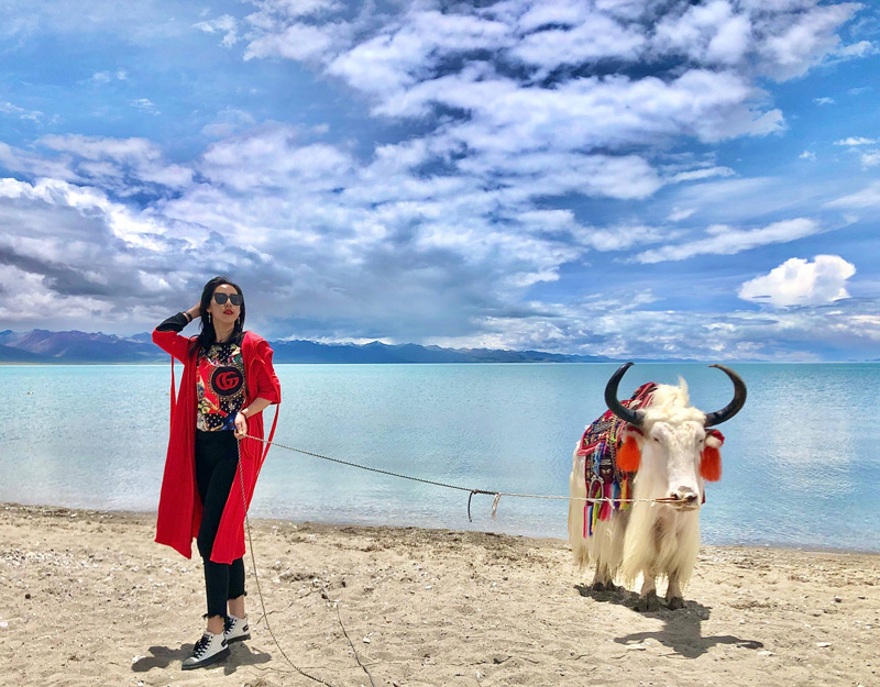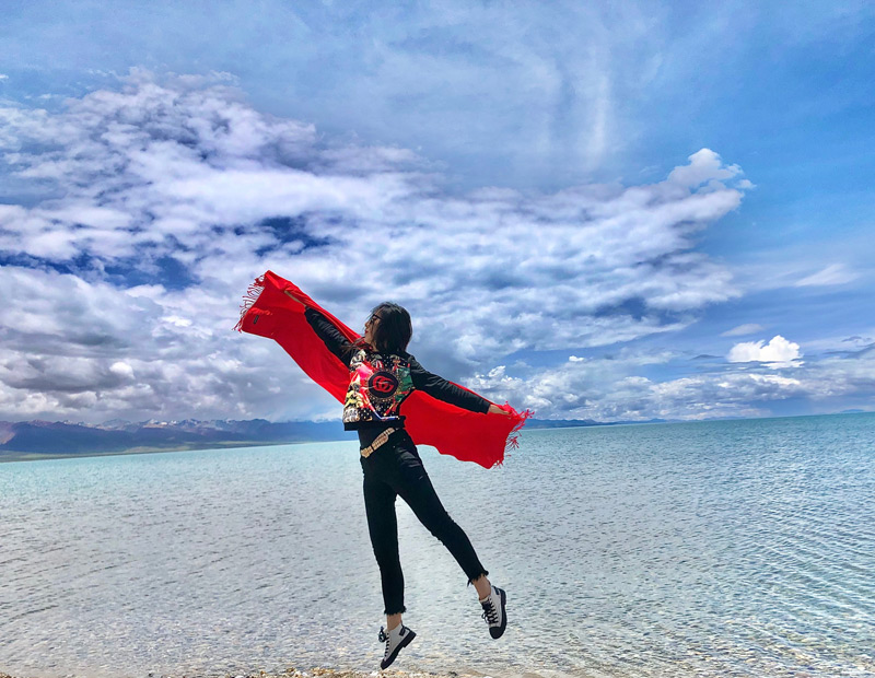 西藏的三大圣湖之一,湖面像一条飘带挂在天地之间,清澈的湖水、巍峨的雪山、如洗的蓝天和朵朵白云融为一体,词语匮乏了,只能用很美来总结了。